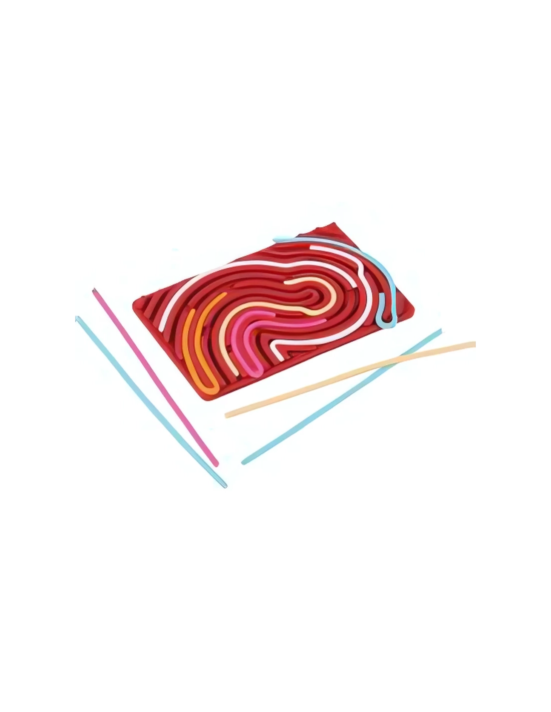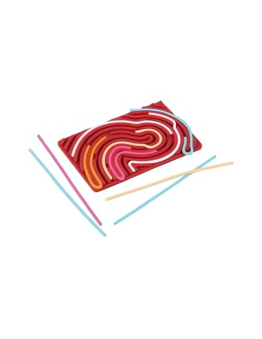 Le Senso-Board est bien plus qu'un simple jeu de cordons. C'est un outil pédagogique conçu selon les principes de l'éducation multisensorielle (Montessori, Steiner, Freinet). Le plateau double face offre deux expériences tactiles distinctes : une surface de picots doux qui stimule la perception fine du toucher, et un labyrinthe de formes courbes qui invite à l'exploration créative.