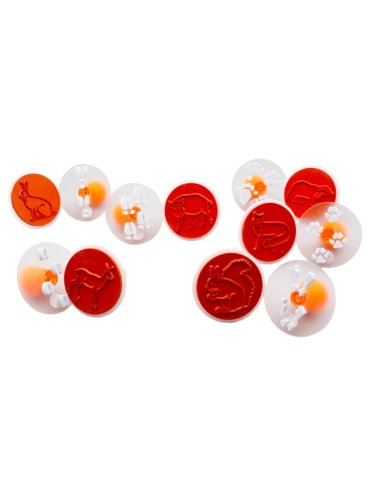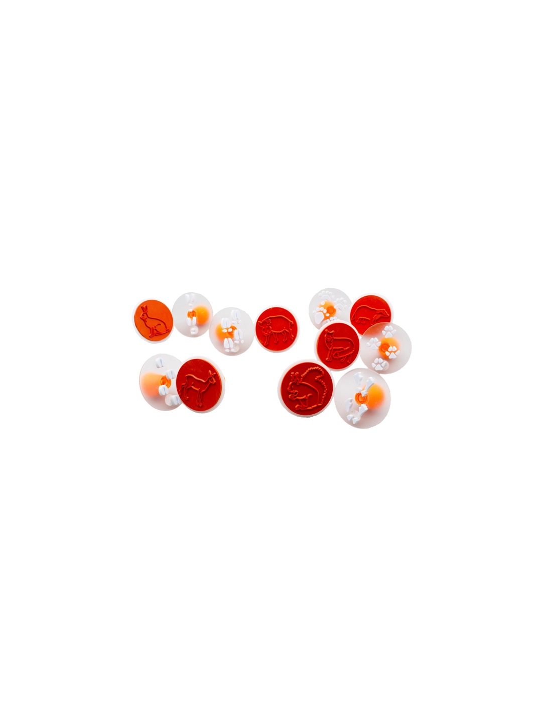 Ils sont là, tout proches, et pourtant si discrets. Le lapin qui file sous les ronces, le chevreuil qui s'échappe dans les sous-bois, l'écureuil qui bondit de branche en branche — les enfants les cherchent, les imaginent, veulent les connaître. Ce set de 12 tampons leur donne les outils pour les retrouver : 6 tampons contour à peindre et colorier, 6 tampons empreintes pleine surface pour imprimer les pistes sur le papier. Un matériel d'art visuel, d'éveil à la nature et de découverte des animaux sauvages, utilisable dès 3 ans en classe, à la maison ou directement dehors.