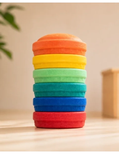 Set de 6 pierres de motricité empilables — Arc-en-ciel | Parcours équilibre & motricité libre