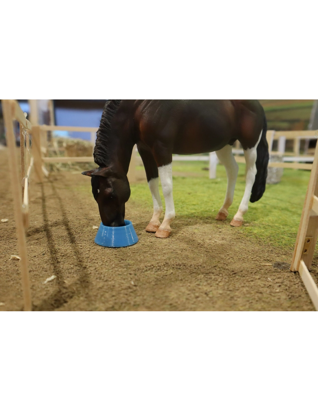 Ce set d'alimentation pour pâture inclut tout ce qu'il faut pour une alimentation sans désordre des figurines de chevaux, même en extérieur.