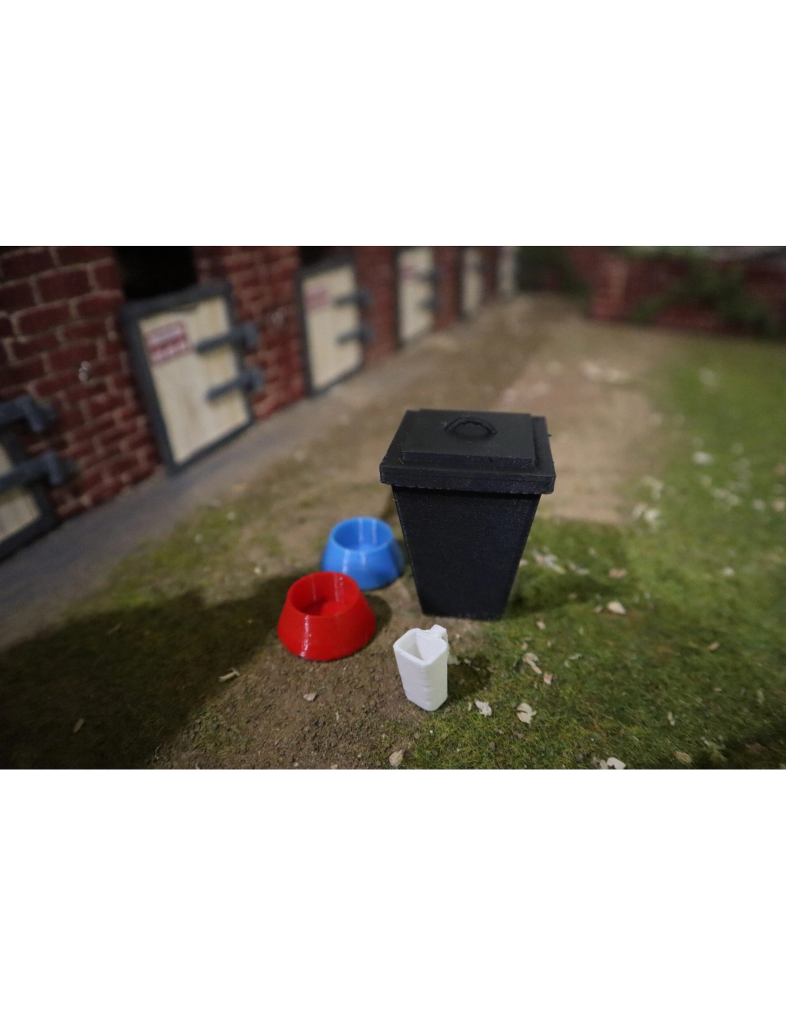 - Comprend : 1 poubelle, 2 mangeoires de pâture, 1 doseur à granulés