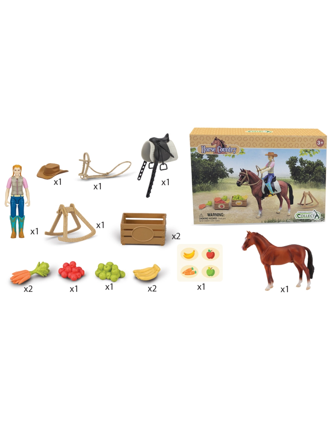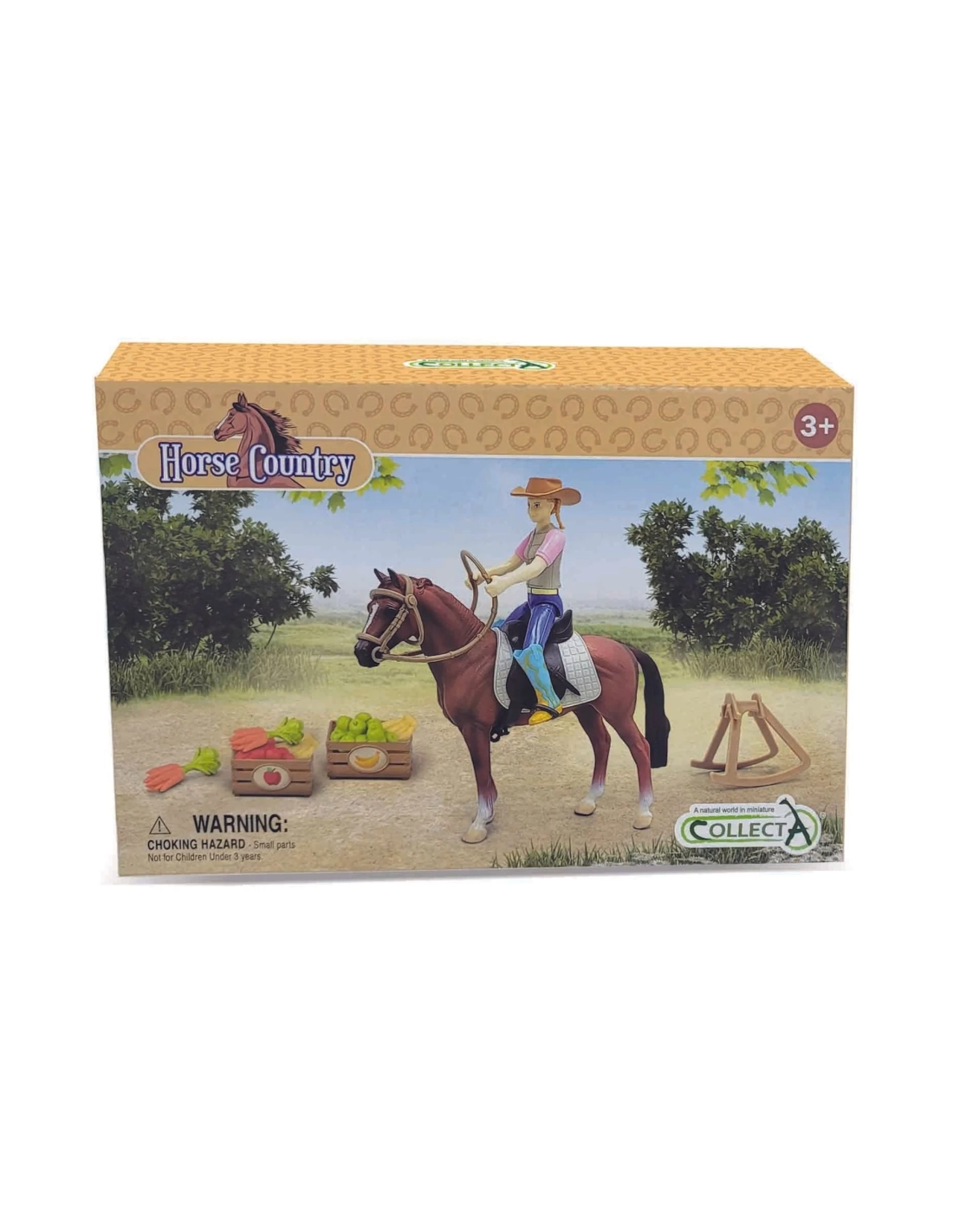 Le Set Cavalière Cowgirl offre une expérience immersive dans le monde équestre miniature. La cavalière articulée est prête à s’occuper de son cheval, un majestueux étalon hanovrien alezan, à l’aide des accessoires inclus. Que ce soit pour préparer le cheval avec la selle et la bride ou pour le nourrir avec des carottes, des pommes et même des bananes, ce set encourage l’imagination et le jeu interactif.