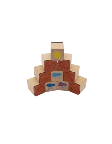 - 10 tampons en bois et caoutchouc représentant toutes les conditions météorologiques