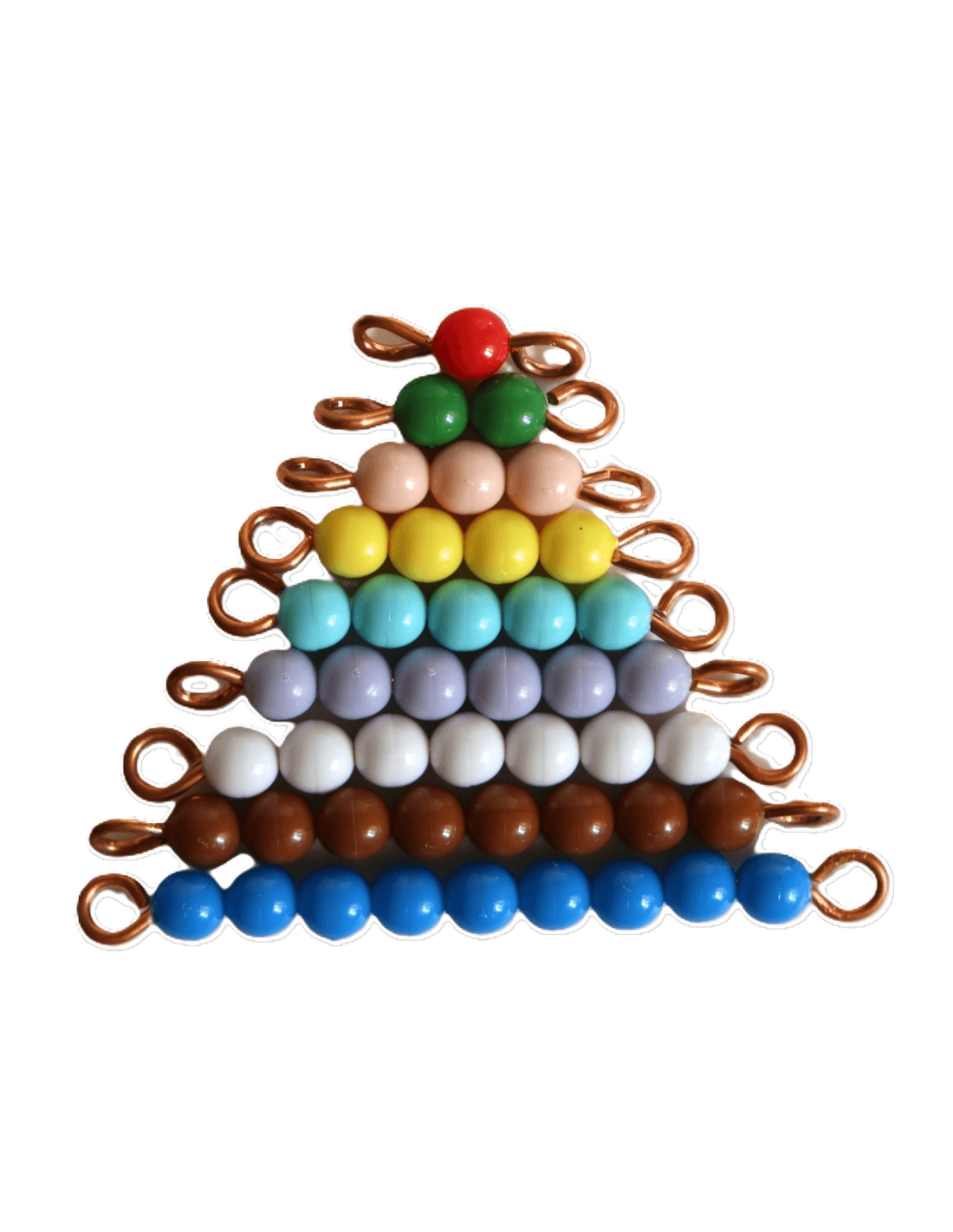 Escalier de Perles Colorées, un matériel éducatif essentiel pour l'apprentissage des concepts de numération et de séquence selon la méthode Montessori. Cet ensemble comprend des barrettes de perles colorées allant de 1 à 10, idéal pour aider les enfants à comprendre les nombres et leurs quantités correspondantes.