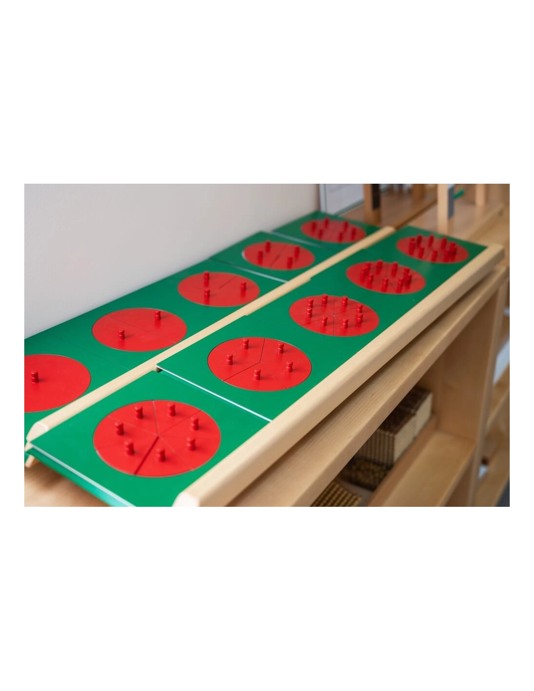 Ce matériel s'intègre parfaitement dans un environnement Montessori à partir de 6 ans, et permet de présenter le matériel de fractions de manière claire.