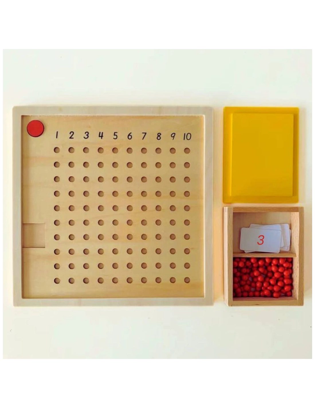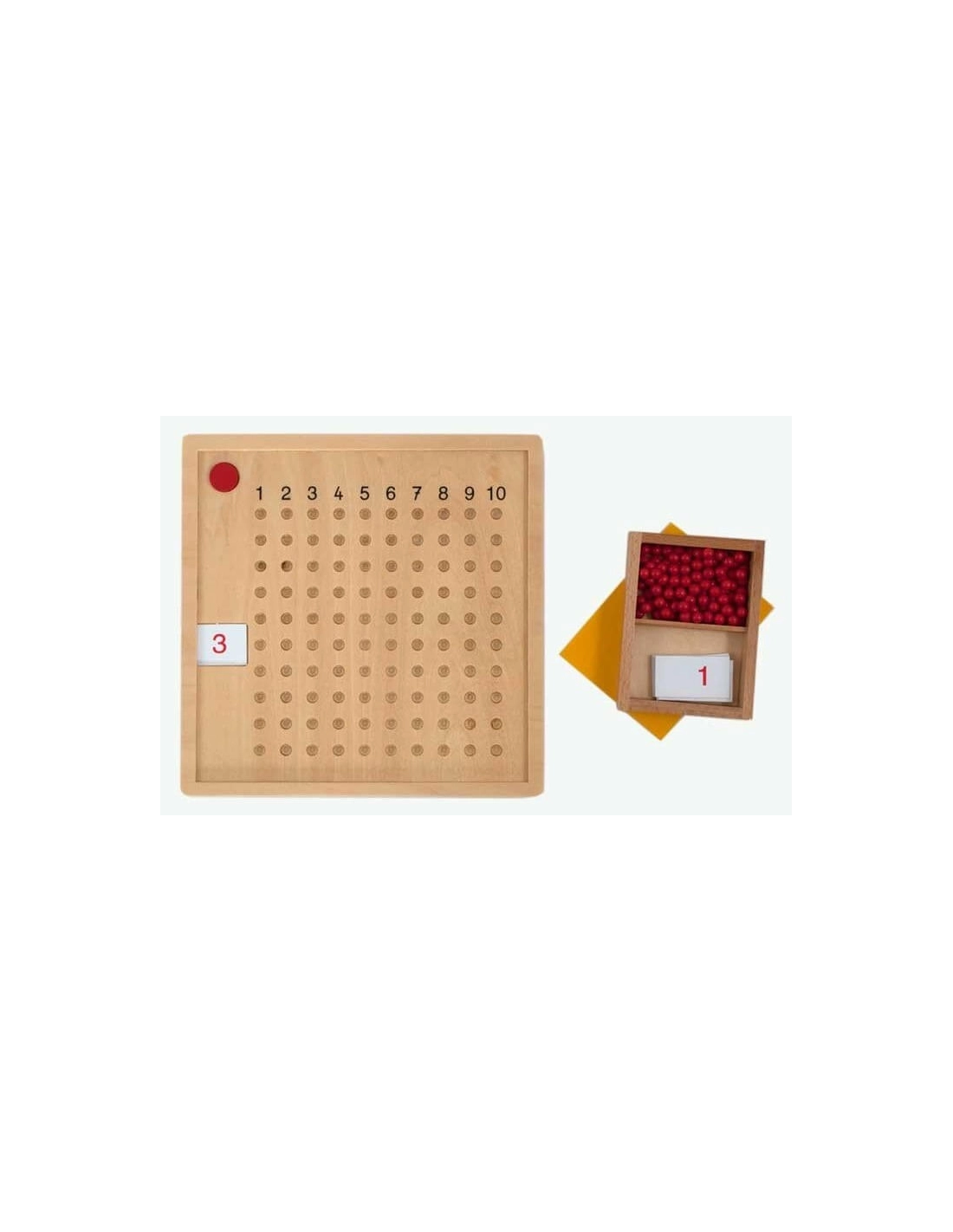 La Table de Multiplication Montessori avec Perles est un outil éducatif essentiel pour pratiquer les tables de multiplication de 1 x 1 à 10 x 10. Cet ensemble permet aux enfants d'apprendre les mathématiques de manière concrète et interactive, en utilisant des perles pour visualiser et mémoriser les résultats des multiplications.