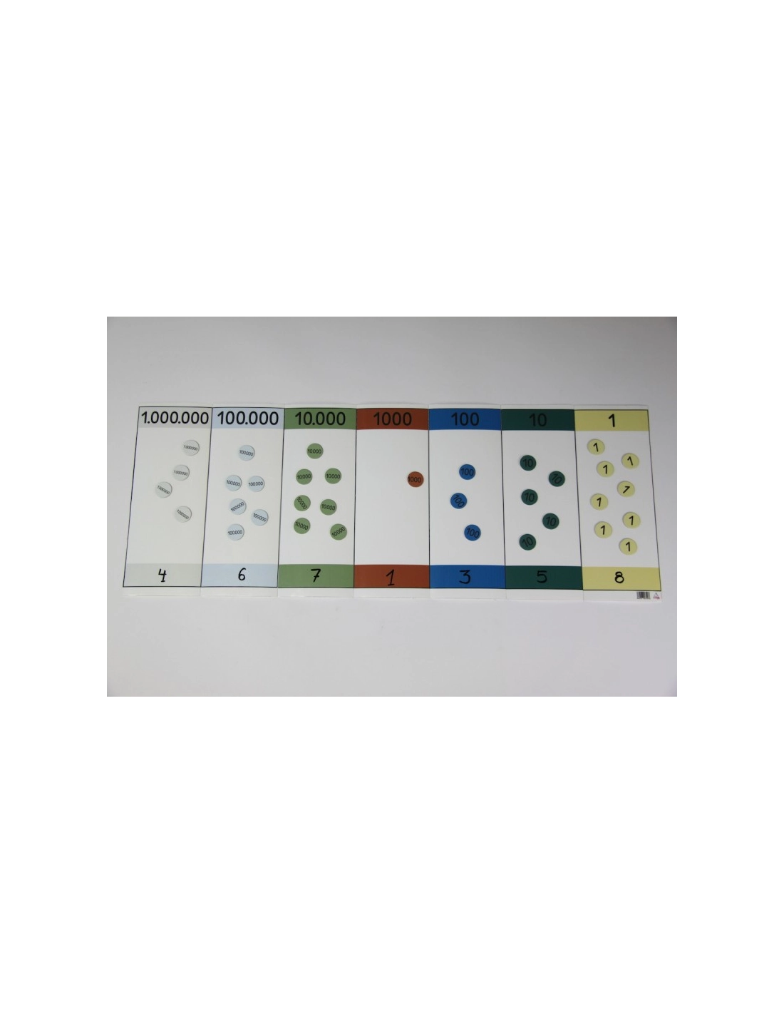 Ce tableau est un support de jeu idéal pour apprendre la décomposition des nombres selon leur valeur de position. Il est composé de 10 colonnes, allant de l’unité au milliard, dans lesquelles on peut placer des jetons de couleur. Ce tableau est compatible avec notre système décimal encastrable, un matériel de base 10 qui permet de représenter les nombres sous forme de cubes, de barres ou de plaques. Ces deux outils sont inspirés de la méthode Singapour, une approche pédagogique reconnue pour l’enseignement des mathématiques.