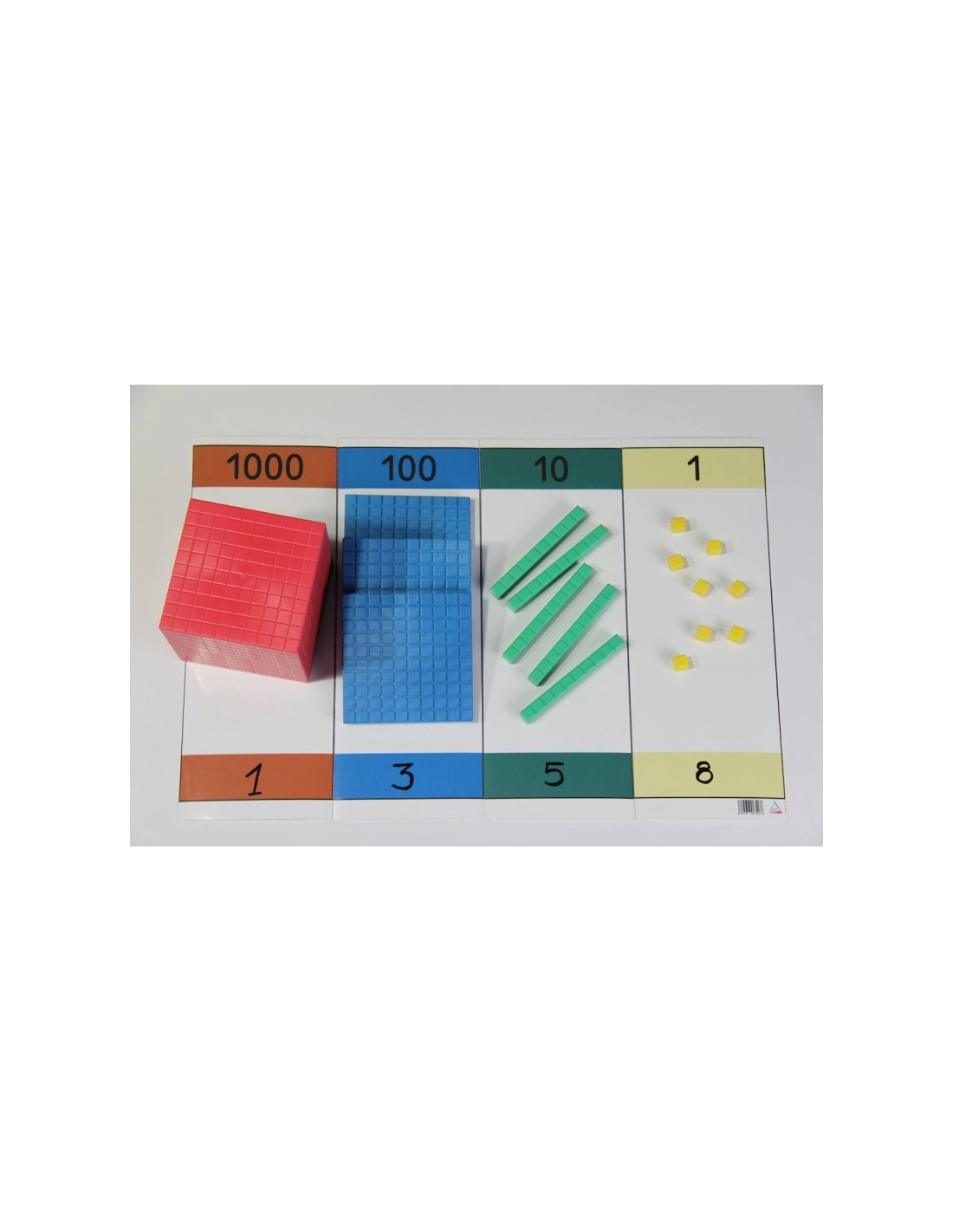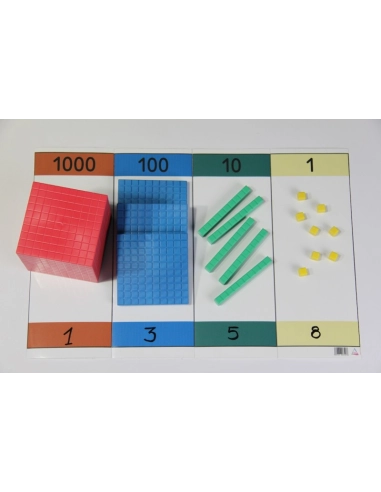 Les jetons et les barres base 10 sont vendus séparément. Vous pouvez les commander sur notre site, en choisissant entre le set base 10 standard ou le set base 10 complet, selon vos besoins.