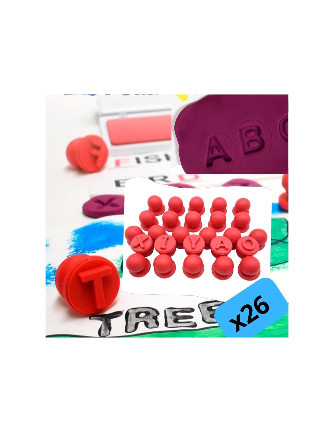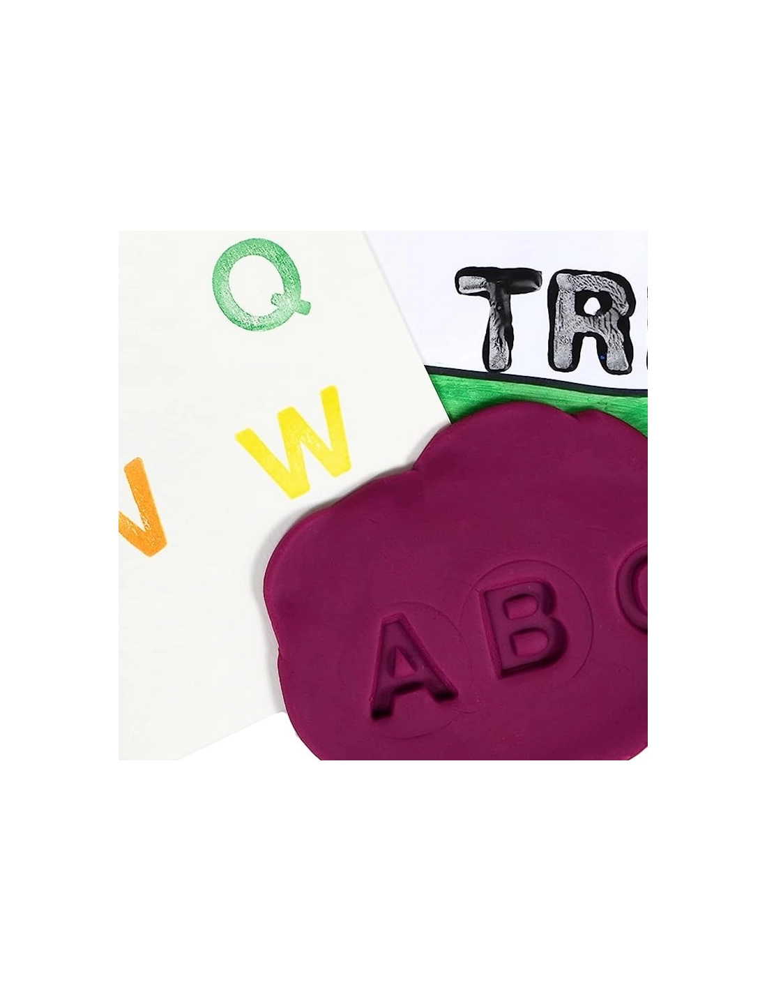 Enseignez la reconnaissance des lettres et la coordination œil-main avec cet ensemble de tampons à gros caractères avec un grip ergonomique pour les petites mains. Les tampons laissent l'empreinte de la lettre et peuvent être utilisés avec de la pâte à modeler, de l'argile, pour des activités artistiques et pédagogiques amusantes.