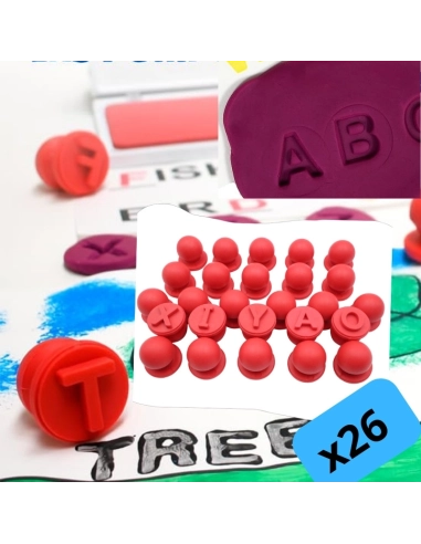 Tampons empreintes avec grip ergonomique - Accessoires pour pâte à modeler - Ensemble de 26 tampons de l'alphabet