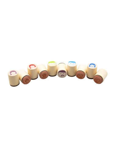 Tampons de qualité professionnelle en bois et caoutchouc. Outil pédagogique original pour l'expression créative et la communication émotionnelle.