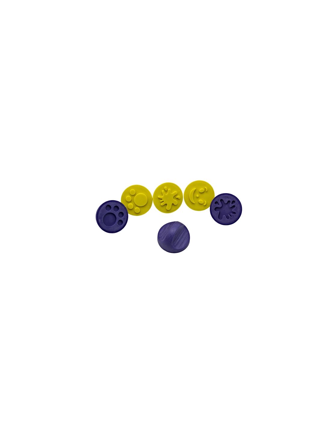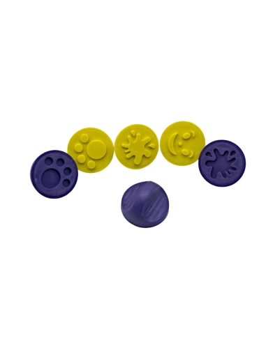 Le set de 6 tampons ergonomiques Opposés invite les enfants à découvrir les formes en relief et en creux à travers des motifs amusants : patte animale, smiley et éclaboussure. Chaque motif est décliné en version concave et convexe pour stimuler la curiosité, favoriser les expériences sensorielles et développer la créativité dès 3 ans.