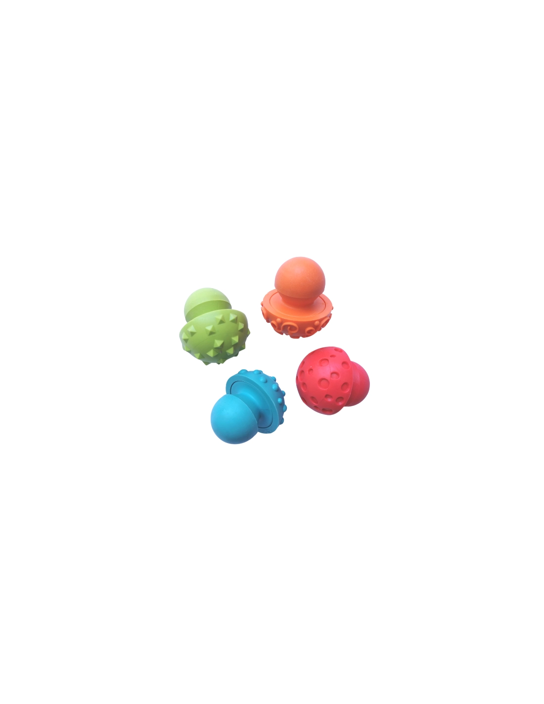 Avec ces 4 tampons pression texturés, vos enfants découvrent une nouvelle façon ludique de créer des motifs originaux ! Grâce à leur prise ergonomique facile, ces tampons en caoutchouc doux s’utilisent simplement en pressant délicatement sur la peinture ou la pâte à modeler, pour imprimer instantanément des textures variées et attractives.