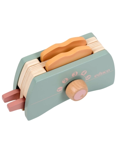 Un grille-pain en bois qui fonctionne comme un vrai ! Insérez les tranches, réglez la température avec le bouton rotatif et faites sauter les toasts. Un jouet d'imitation parfait pour les petits cuisiniers en herbe.