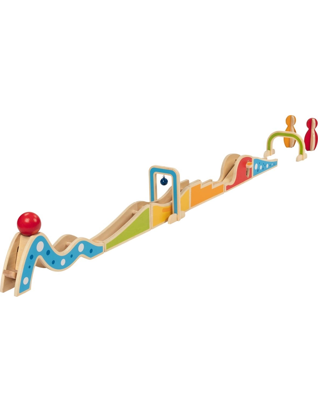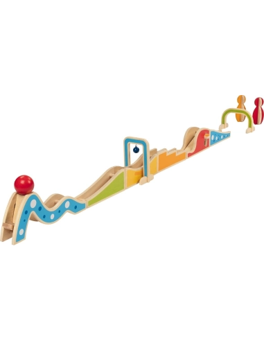 Le plaisir commence dès que la boule est placée sur le lanceur. Les enfants adorent voir la boule dévaler la descente, faire sonner la cloche, et faire tomber les quilles. Chaque partie du parcours peut être réorganisée, offrant des heures de divertissement. Ce jeu est parfait pour un moment de jeu interactif, que ce soit seul ou avec des amis.
