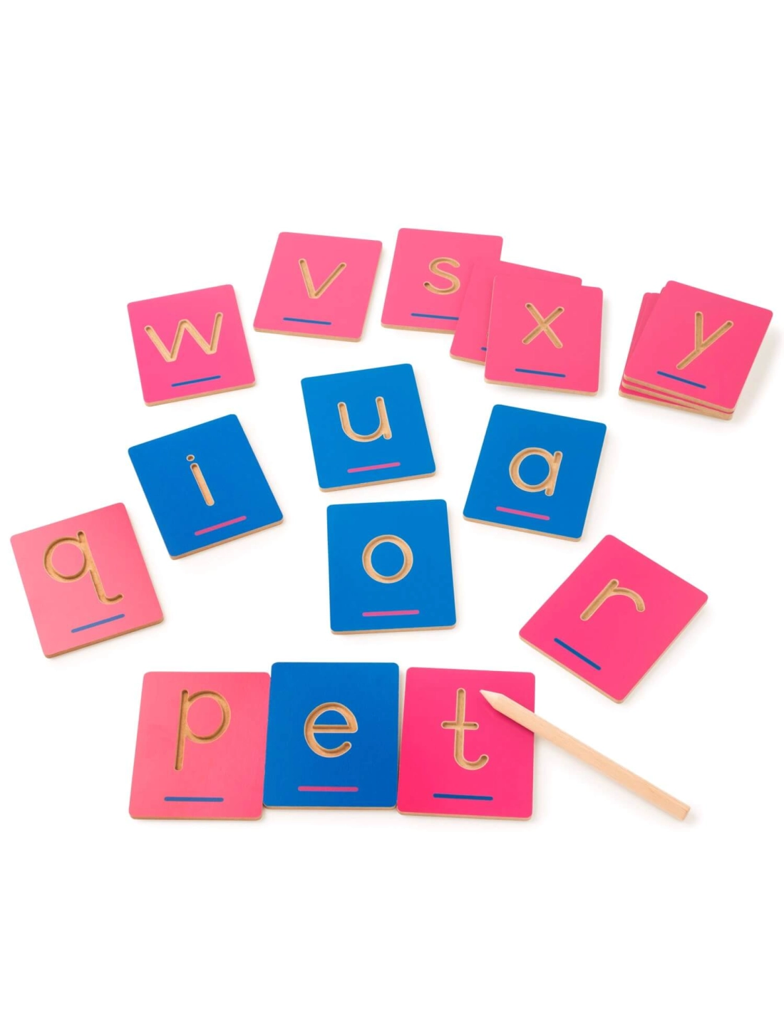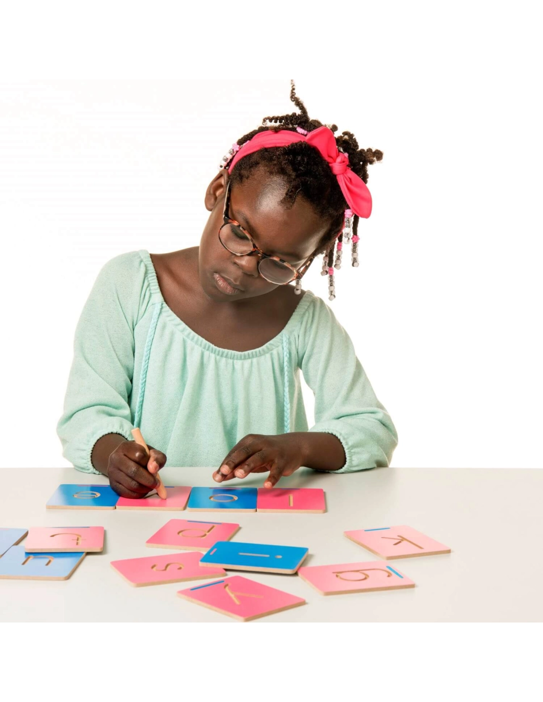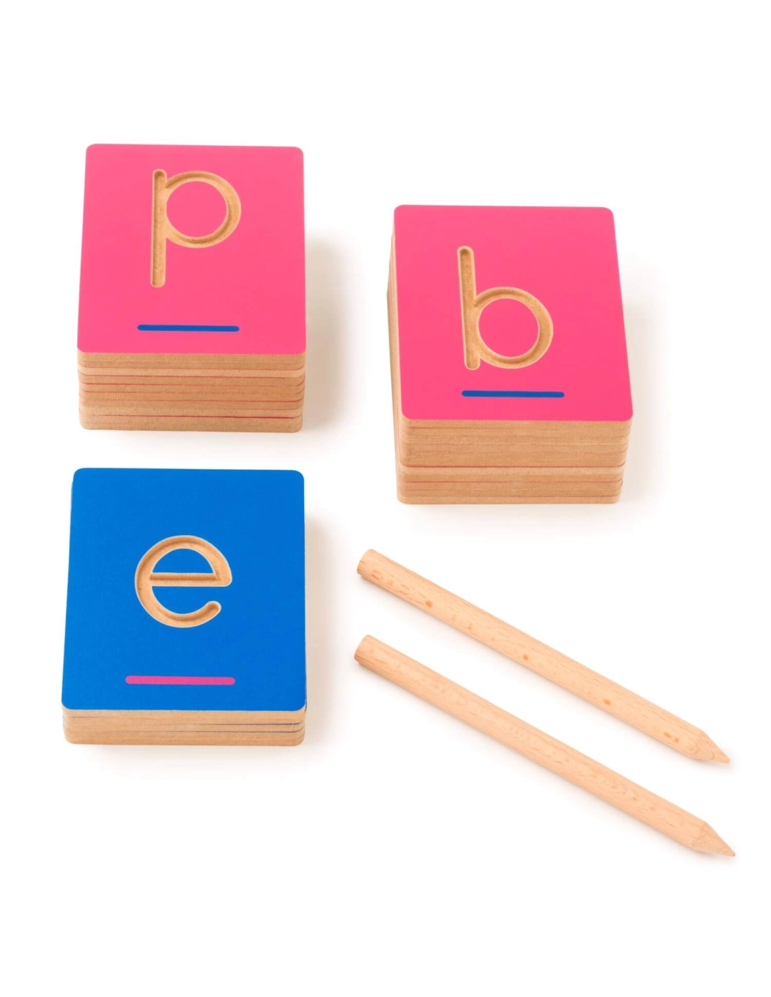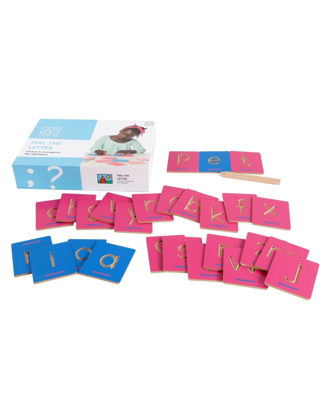 J'apprends à reconnaître l'alphabet. Suivez les formes des lettres avec votre index ou le stylo en bois. Stimule les compétences de pré-écriture, la reconnaissance de la forme des lettres et la motricité fine.