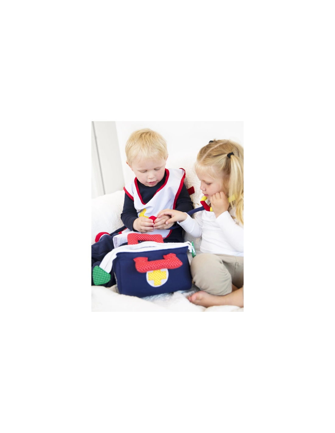 La trousse de docteur en tissu d'Oskar & Ellen est parfaite pour les jeux d'imitation ou pour préparer un enfant à une visite chez le médecin. Ce set réaliste comprend tout ce dont un petit docteur en herbe a besoin pour soigner ses patients et rendre l'expérience amusante et éducative.