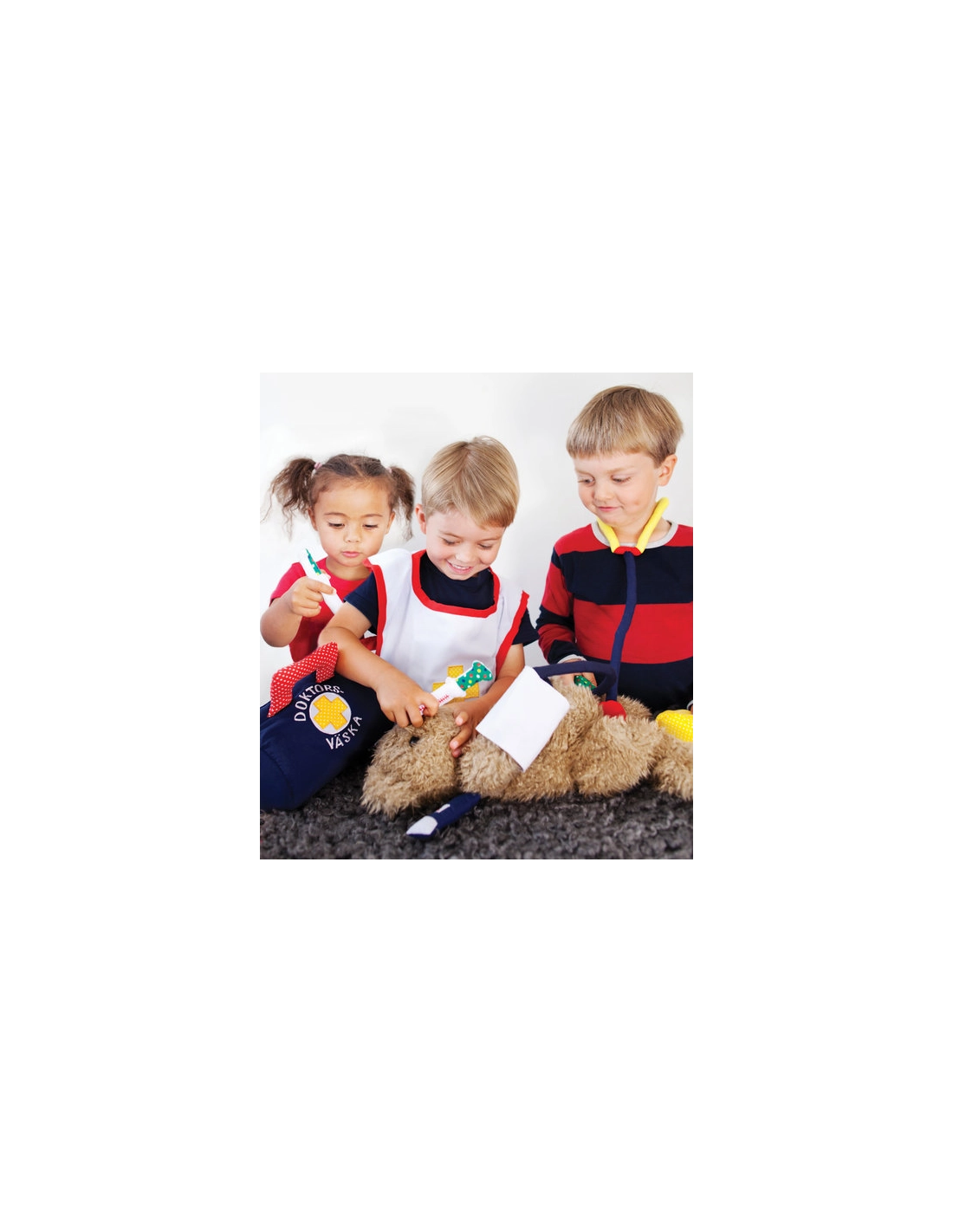 La trousse de docteur en tissu d'Oskar & Ellen est un jouet éducatif et amusant qui permet aux enfants d'explorer le monde de la médecine de manière ludique. Idéal pour les jeux de rôle, ce set comprend un tablier, un stéthoscope, un tensiomètre, un flacon de médicament, un thermomètre et une seringue, offrant ainsi une expérience complète pour jouer au docteur.