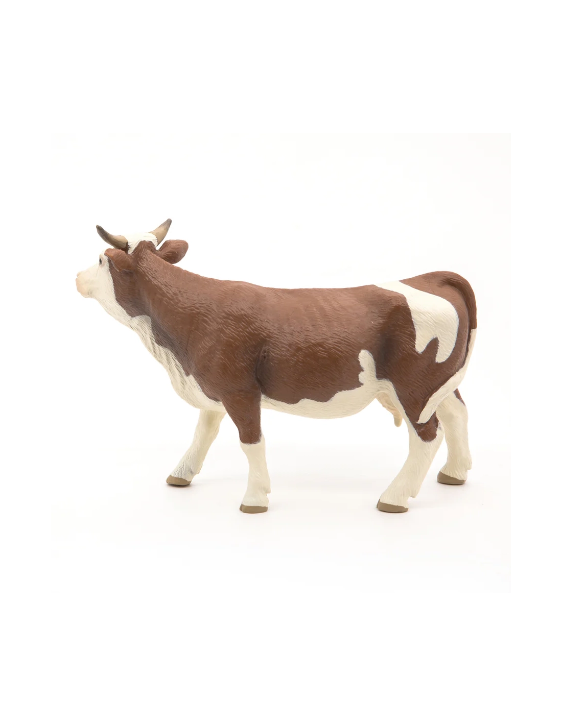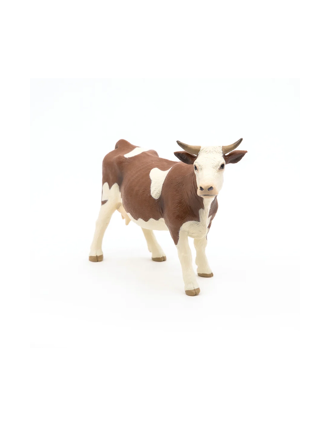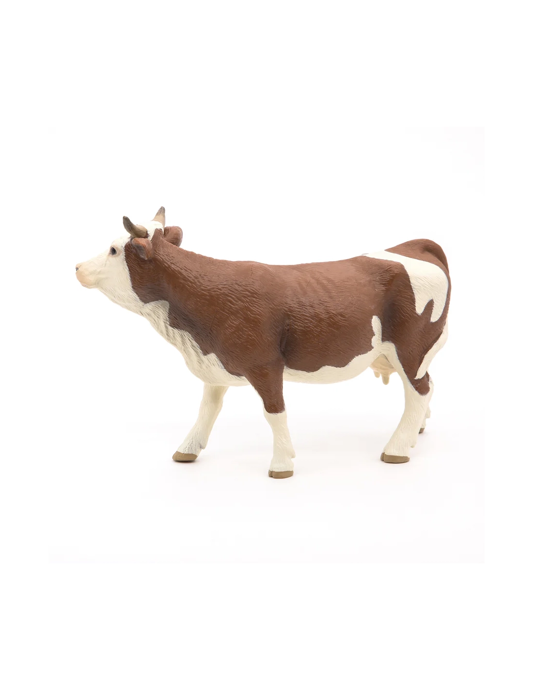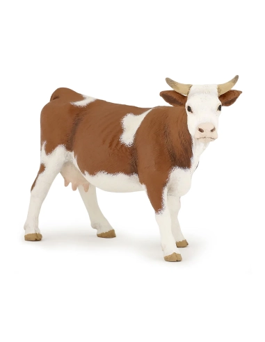 Cette figurine Schleich reproduit fidèlement la vache Simmental française avec son pelage caractéristique blanc et rouge acajou. Peinte à la main avec un souci du détail remarquable, elle constitue un ajout parfait à toute collection d'animaux de la ferme.