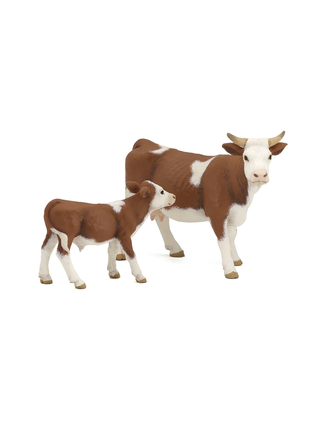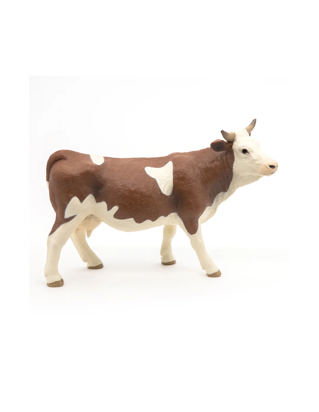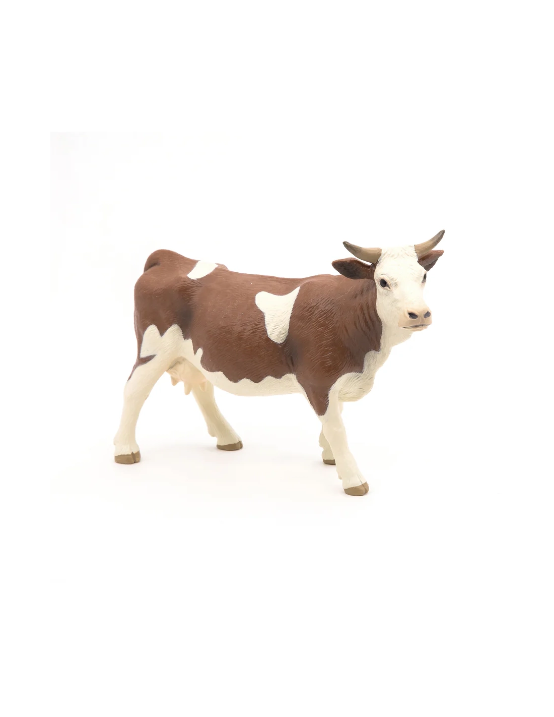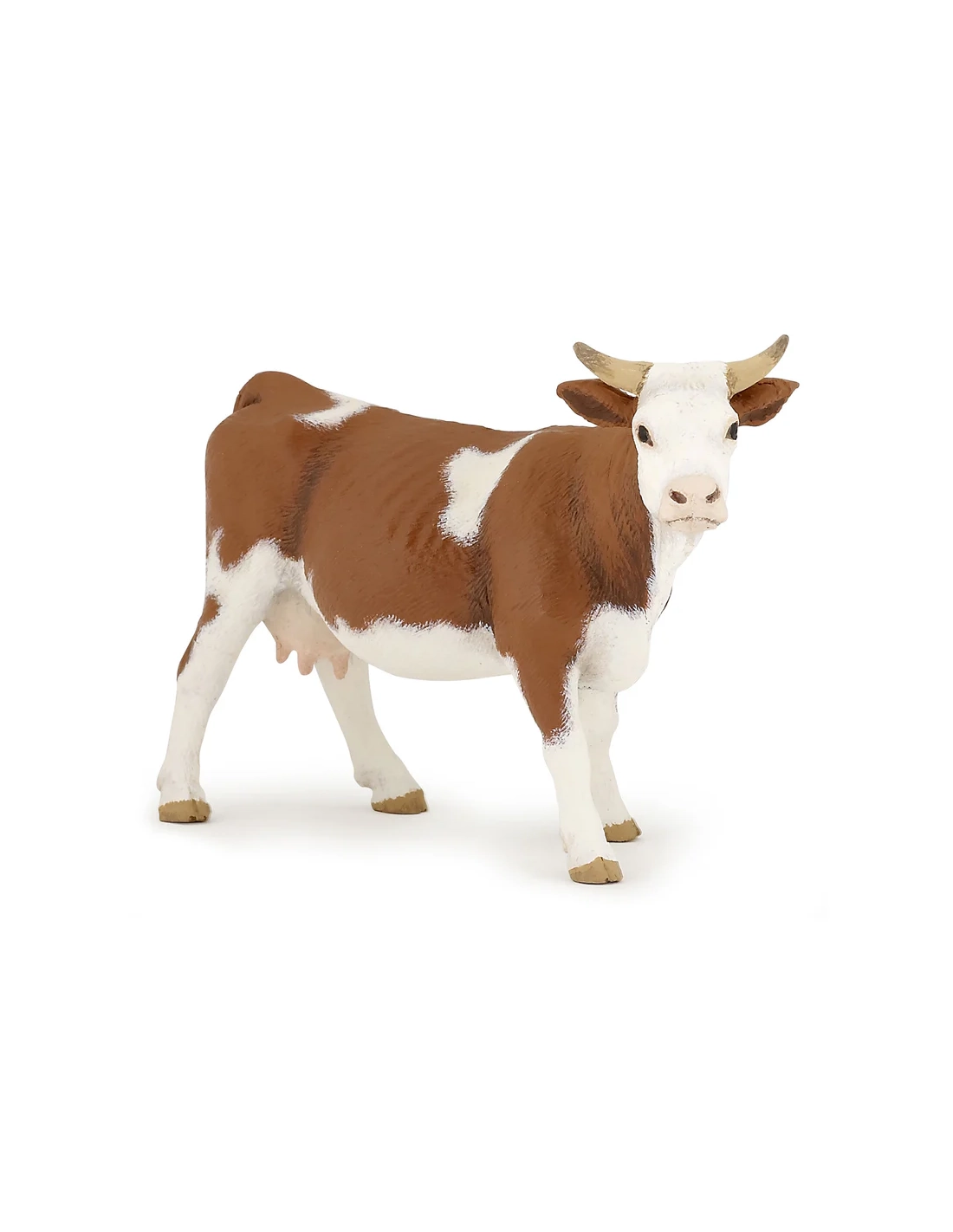 Cette figurine Schleich reproduit fidèlement la vache Simmental française avec son pelage caractéristique blanc et rouge acajou. Peinte à la main avec un souci du détail remarquable, elle constitue un ajout parfait à toute collection d'animaux de la ferme.
