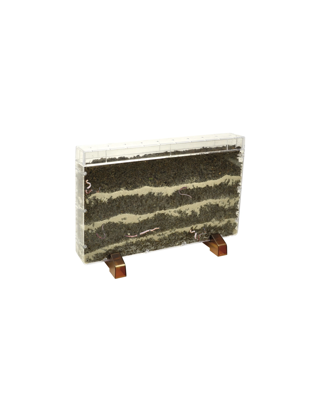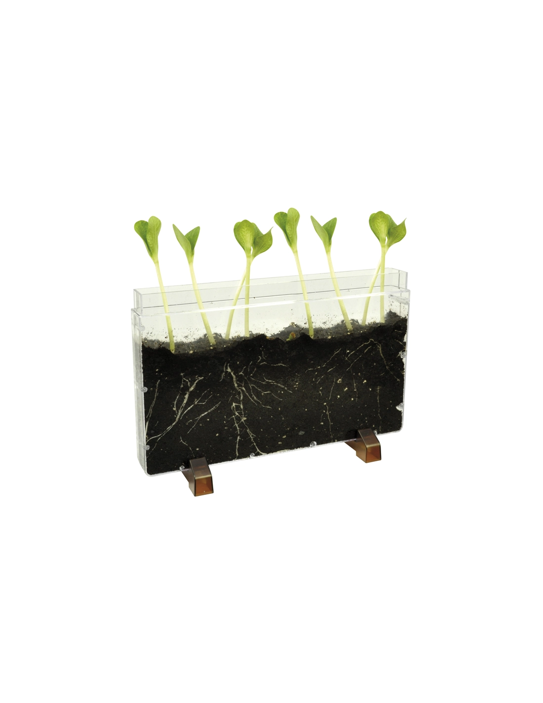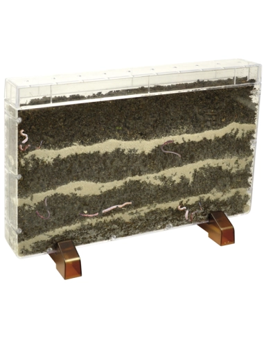 Ce vivarium permet d'observer la croissance des racines et les galeries creusées par les vers de terre. Grâce à sa protection contre la lumière, le développement souterrain est favorisé, puis, une fois la protection retirée, on découvre avec émerveillement les racines et les galeries. De plus, son couvercle troué garantit une bonne aération.