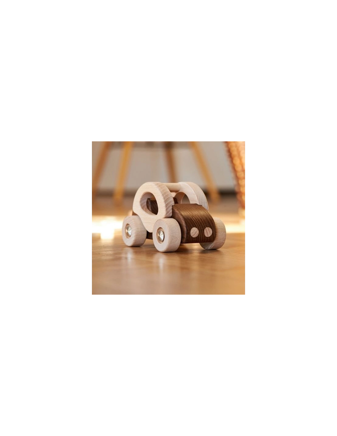 Cette voiture en bois au design intemporel et épuré permet aux enfants de laisser libre cours à leur imagination. Que ce soit pour des courses imaginaires ou des balades dans un univers de jeu, ce jouet en bois naturel accompagne les tout-petits dans leur développement créatif et moteur.